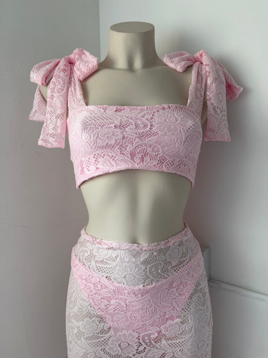 Baby Pink Lace Extra Thick Tie & Maxi Skirt Three Piece Set