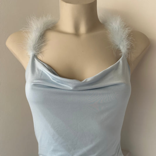 Baby Blue Marabou Cowl Neck Dress