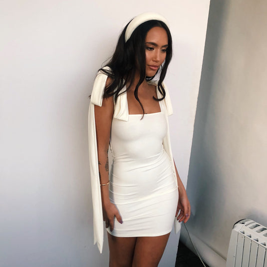 Custom Extra Thick Shoulder Tie Mini Dress (Various Fabrics)