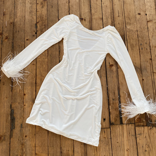 Cream Feather Trim Dress