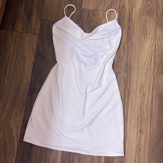 Custom Crystal Embellished Cowl Neck Slip Dress (Various Fabrics)