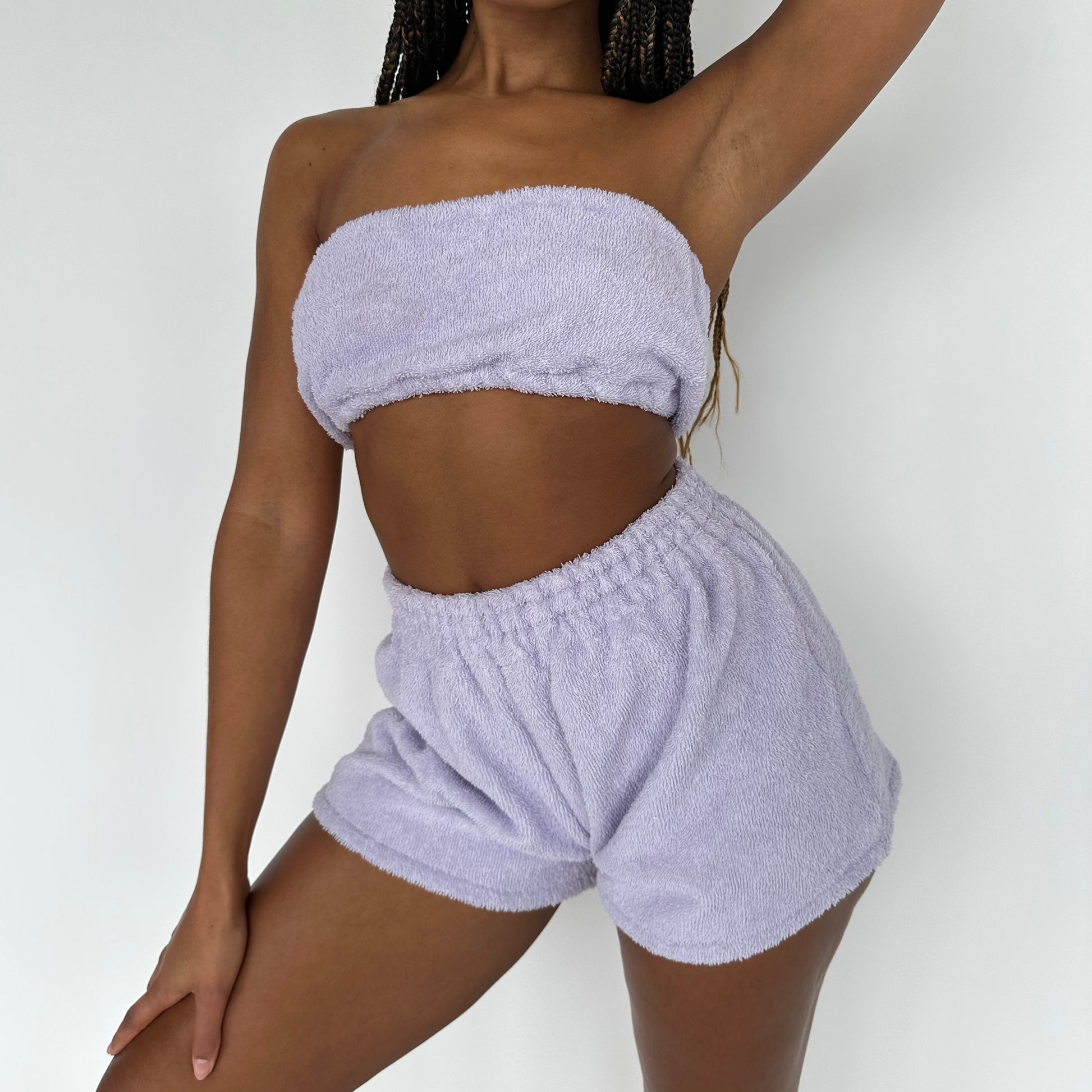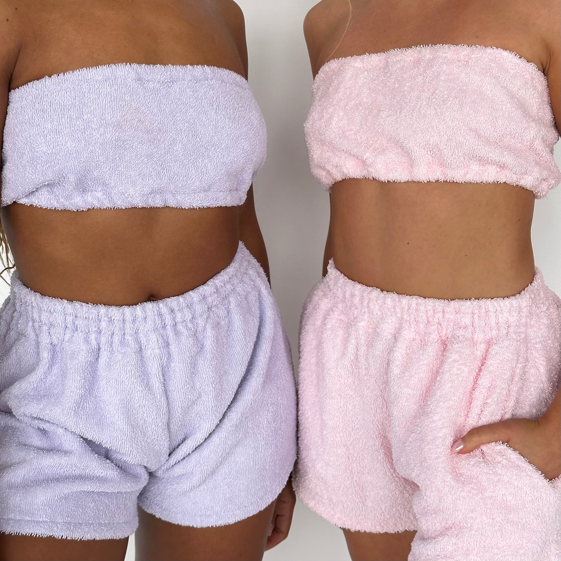 Set includes an elasticated scrunch style bandeau top & matching shorts
